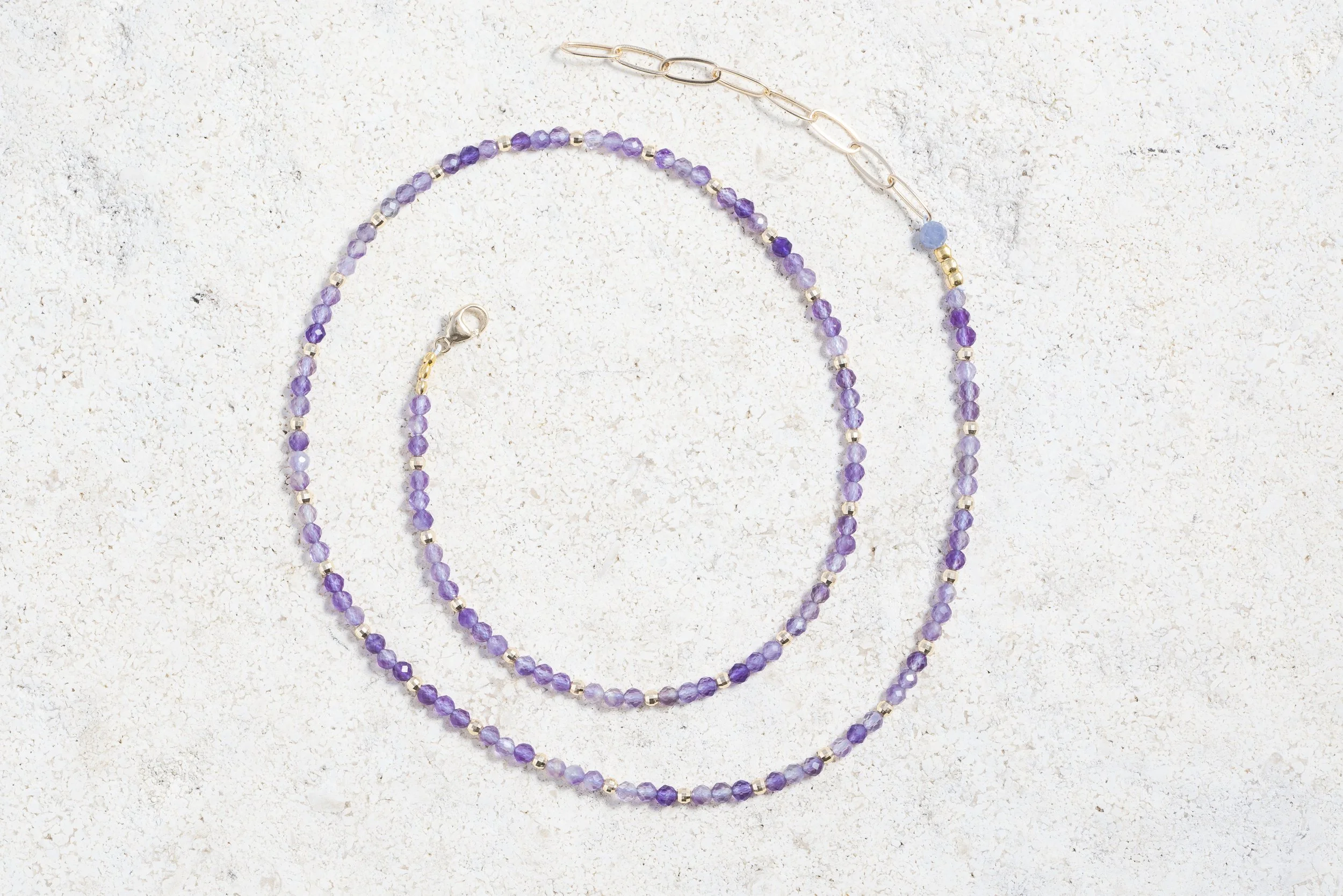 Amethyst, a tranquil gem, soothes the mind and harmonizes emotions. It shields against external stressors and gently grounds excesses, offering a serene sanctuary for the soul.