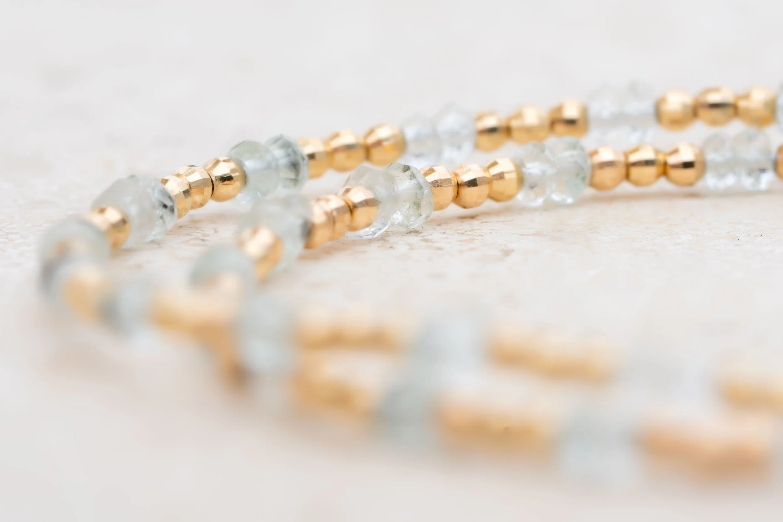Aquamarine is considered the guardian of the sea. It fosters tolerance and aids in navigating overwhelm, thus with its serene presence, bringing clarity to emotions and restoring equilibrium to the mind.